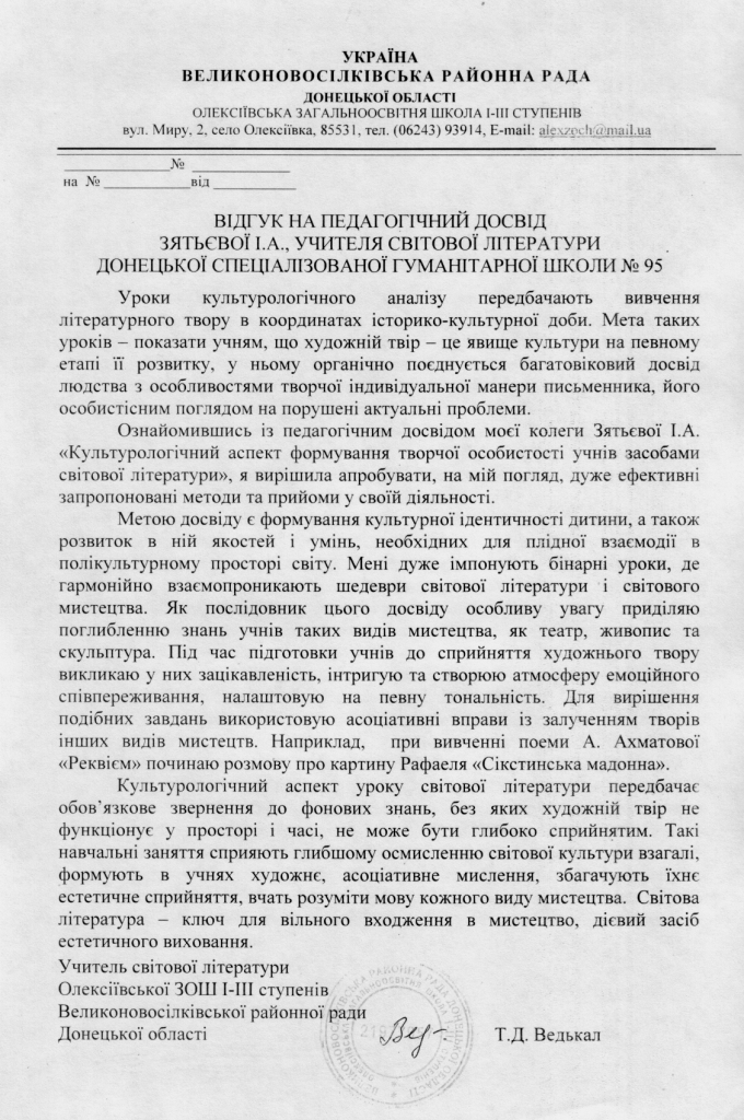 підростаючого покоління. – Донецьк: ДІПО ІПП. – 2007. – С.87-90;- Зятьєва І.А. (в соавт.) Культуротворча функція світньо-виховного середовища закладів гуманітарного профілю // Науковий часопис Національного педагогічного університету. Вип. 7 (17). Серія 16.- 2007. – С. 219-224;